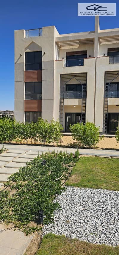 With a total installment of 380k ground floor chalet with a direct garden and a pool for sale in Gaia North Coast Al Ahly Sabbour