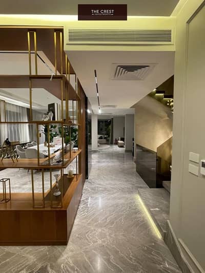 fully finished 3story villa with a special price featuring a pool and an open view next to Sodic just minutes from the patio on the Suez Road in tal