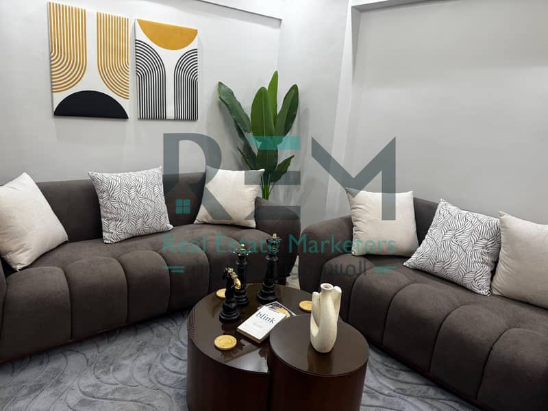 شقه للبيع بمنتجع هوليداى بشاطئ النخيل مفروشه فرش فندقي
