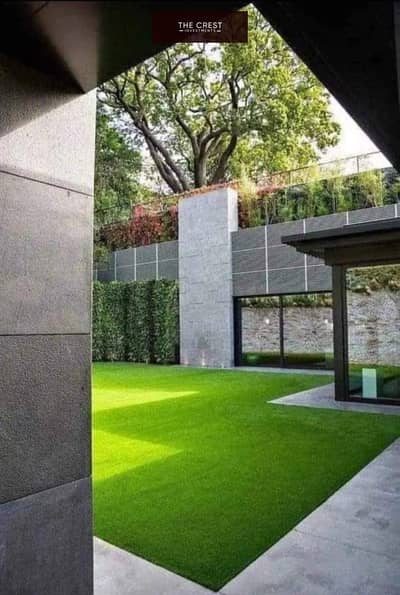 Open-view villa on Central Park for sale, 3 floors with a garden and private roof, with installments over 10 years.