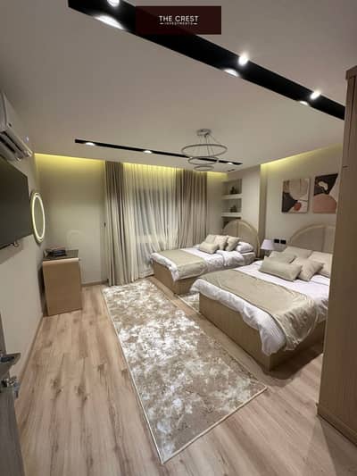 At the best stage, a 3-bedroom apartment with a distinctive view, offering a high level of privacy and tranquility. The layout and view are fantastic, with the longest payment plan over 12 years and a 50% discount. Sarai Compound, fully occupied and fully serviced since 2020.