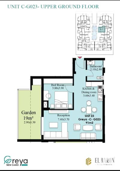91 m apartment + 19 m in the Jarraya compound in the Fifth Settlement, New Cairo