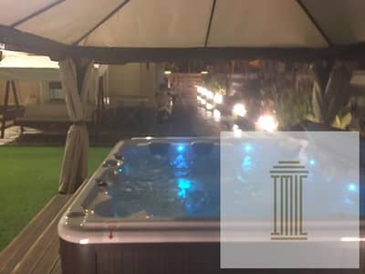 Villa for sale, land area 610 square meters, building area 378 square meters, concrete was added to the area to remain 422 square meters, consisting of a reception, dining room, kitchen, guest bathroom on the ground floor, the first floor has four rooms, each room has a bathroom, the roof has a room with a bathroom in addition to a guest bathroom for the roof, the total area of the villa floors and bathroom walls is imported marble, in addition to the villa stairs, the entire ceilings, in addition to the villa walls, Italian and German wallpaper for the villa, central air conditioning and central heating, and very special finishing and decorations. The license includes approval to build a swimming pool, approval to build an elevator, a license to build a room underground 30 meters, and a license to build a guard room above ground 9 meters with natural gas and fully finished