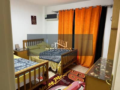 For rent in Madinaty, an apartment of 107 square meters, company finishing, in B2, overlooking a wide garden, modern furniture