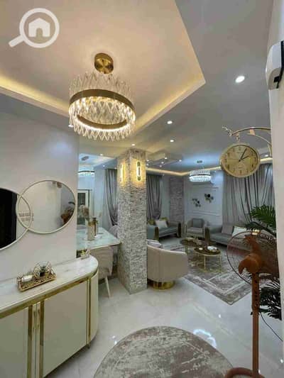 Wood and marble substitute + columns made of the finest types of stone + modern gypsum board + original السويدي cables + luxurious سلّاب ceramics + mica stone on the exterior facade of the apartment