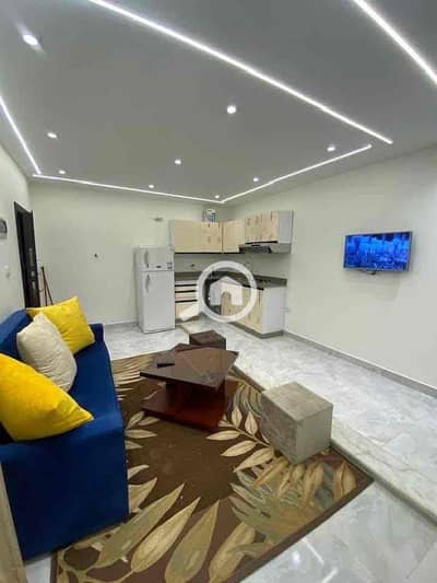 Furnished studio for rent in Abraj Othman, 60 square meters, consisting of one room, a reception, a kitchen, equipped with all appliances, Wi-Fi, and fully air-conditioned. Electric meter included.