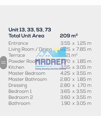 An apartment for sale in Noor City, delivery on the 26th, with an area of 209 square meters.