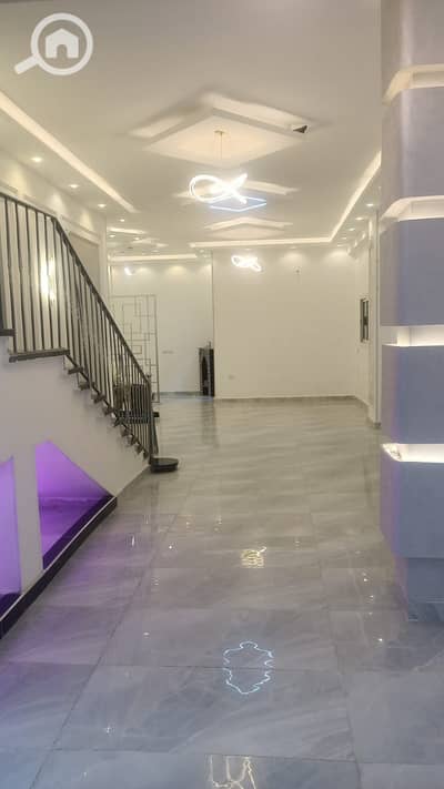Duplex for sale in Al-Siyahia, October Gardens, 300 square meters (5 rooms, each room has a dressing room, one of them is a master bedroom, 2 kitchens, 3 bathrooms, each room has air conditioning), high-end ultra-super-luxury with a garden, 100 square meters, the garden has an American kitchen, electricity meter, gypsum board and lighting, iron doors for the gate and an armored door for the apartments, iron windows for the garden and aluminum windows for all the duplexes