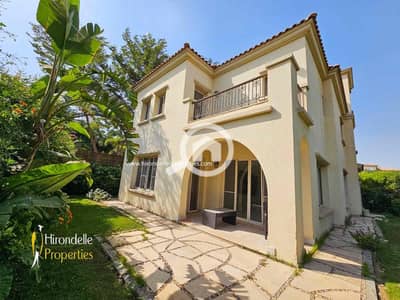 Villa for sale in Uptown Cairo. Land area: 520 square meters. 5 bedrooms, 5 bathrooms. A private garden surrounds the entire house. Large balcony. Price: 45,000,000 EGP.