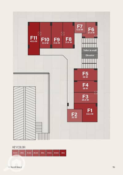 The mall features a main staircase - security and cleaning company - surveillance cameras - elevator - approved fire system - emergency staircase.