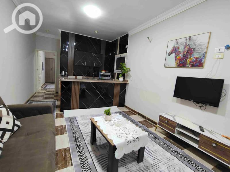 One-bedroom apartment in Hurghada next to the Dhow, at the beginning of the tourist promenade, Al Mohammadi Square, at the first ascent of the hill next to La Perla Hotel.