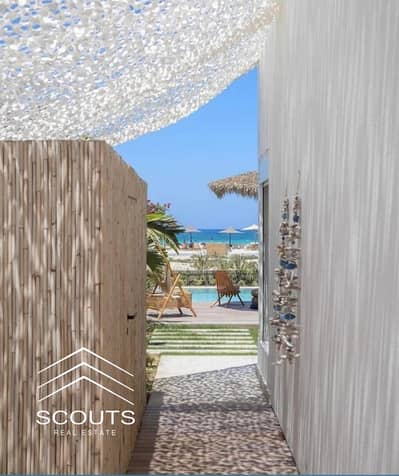 Chalet for sale, 4 rooms, sea view, on the sea and lagoon, finished, with air conditioners, in remaining installments, in Swan Lake El Gouna, in the R