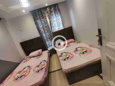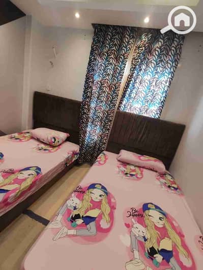 Furnished apartment for rent in Djahla October New Compound close to all services and transportation, third floor without elevator, two rooms, reception, bathroom, and ultra super lux kitchen.