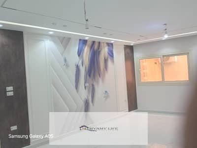 For rent in Al-Ahram Gardens, a 105 square meter side apartment on the second floor, ultra super lux at the old second gate, area H.