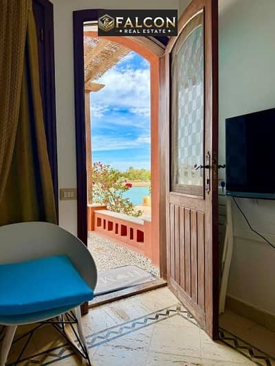 Hotel chalet serviced by InterContinental, fully furnished, first row on the sea, with the highest USD return year-round, next to Soma Bay, Red Sea.