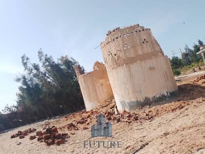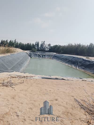 10 feddans farm with walls and a large villa ready for habitation, worker housing, and a fish farm with 2000 cubic meters of water, connected to fresh water from the canal, and the land planted with pomegranates and olives.
