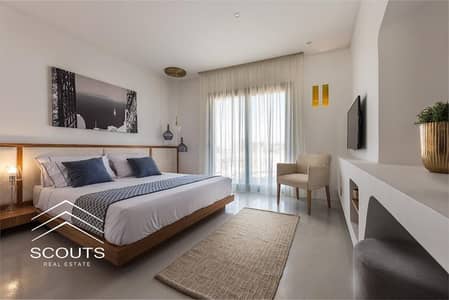 Chalet for sale, 102 sqm, fully finished, with air conditioners and kitchen, first row on the Lagoon in El Gouna, with the highest rental return and t
