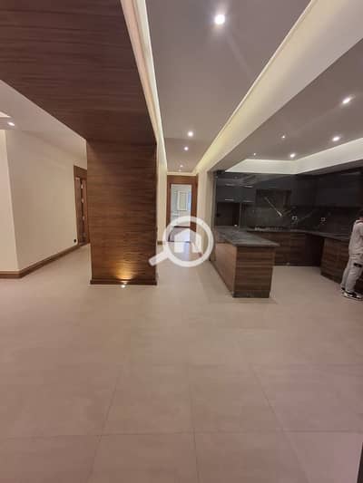 The kitchen is polylac grey, imported marble, wood cladding, natural walnut doors, new Carrier air conditioners, and a modern chandelier.