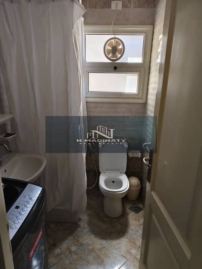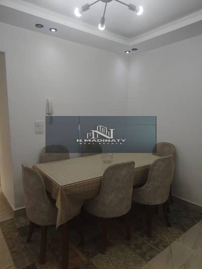 For rent furnished in Madinaty, a 78-square-meter apartment in B12, first residence, special finishing, garden view, sea view, very close to services