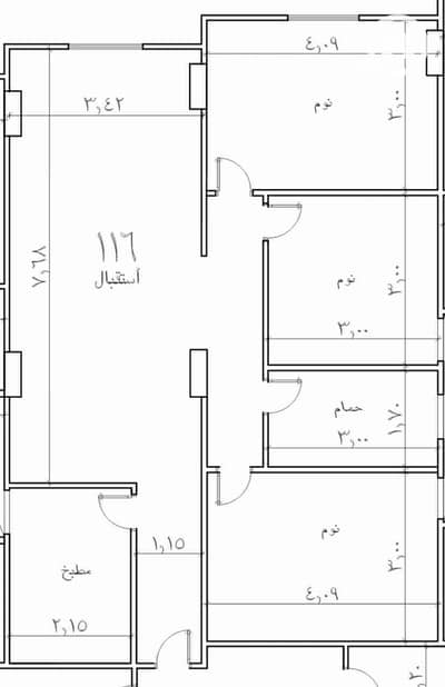 Area: 116m — (3 rooms + bathroom + kitchen + spacious reception)
