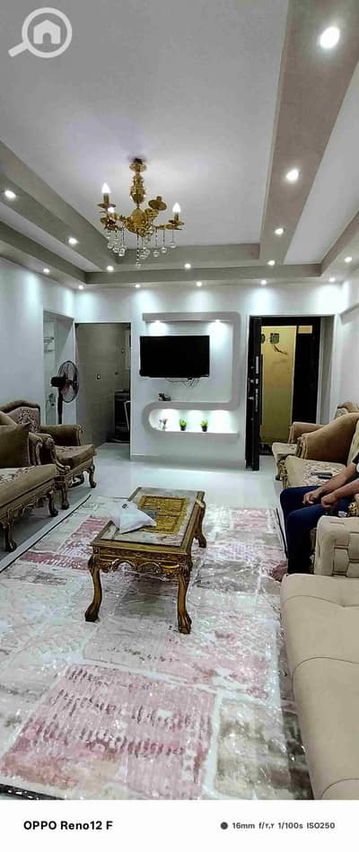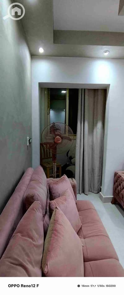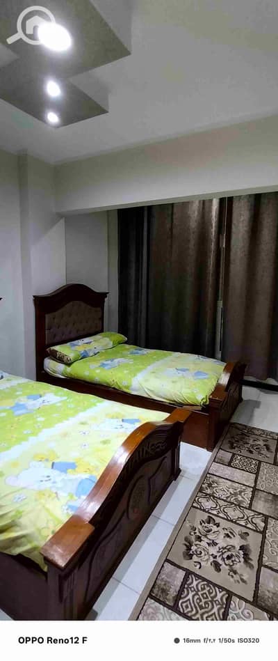 Furnished apartment for rent in Zahra Al-Maadi, super lux finishing, new furniture, air-conditioned, Wi-Fi, natural gas. It consists of two bedrooms, a reception area, a bathroom, and a kitchen. Sixth floor with elevator.