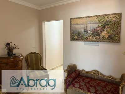 For rent, a furnished 237 sqm apartment in Beverly Hills Compound, Sheikh Zayed, with a garden view.