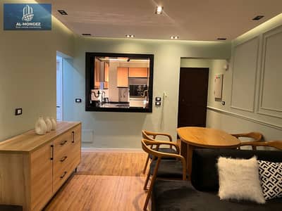 A furnished apartment for rent in Al-Rehab, ultra super deluxe, with an area of 120 square meters, in front of the Eastern Market and all services.