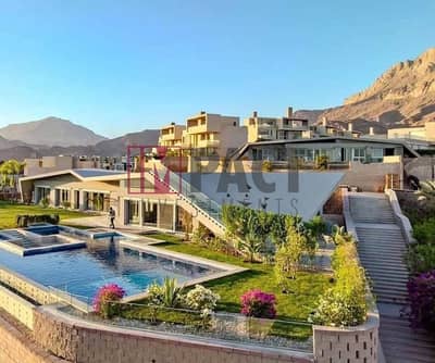 Fully finished, ultra-super-luxury Villa for sale in Il Monte Galala Resort, Ain Sokhna, sea view, fully built on a mountain.