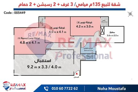 Apartment for sale 135 m net Miami (Gamal Abdel Nasser St. ) - 3,600,000 EGP cash - Agent: Noha Mostafa