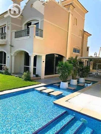 Twin house directly on the pool steps to the British University immediate delivery in the patio prime ready to move in 3 floors with a private garage
