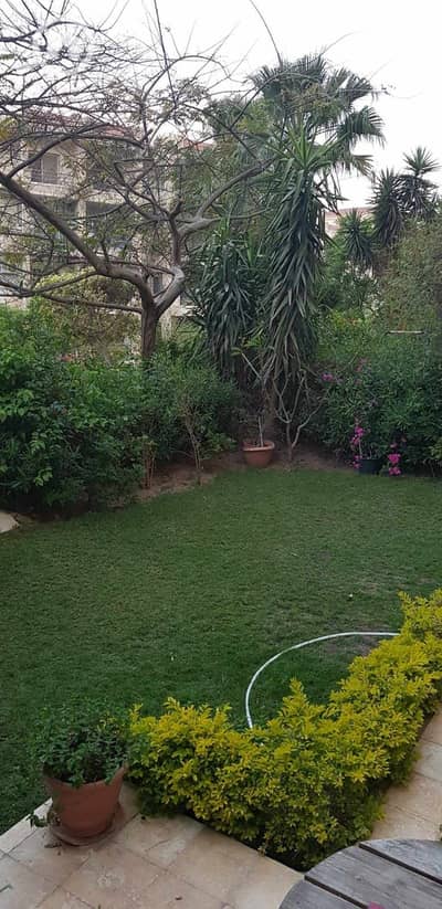 For sale, a ground floor apartment with a garden in Zayed 2000 Compound, double view (two facades), landscape view