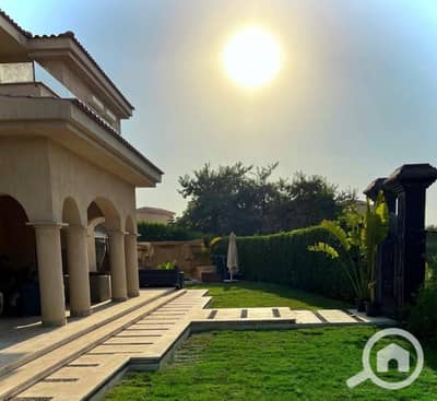 A fully built villa for sale in Maadi View Compound in Shorouk City, with a built-up area of 421 square meters and a garden of 300 square meters. It includes a private garage, private pool, garden, and open roof.