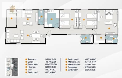 4-piece reception – 3 bedrooms – 3 bathrooms – kitchen