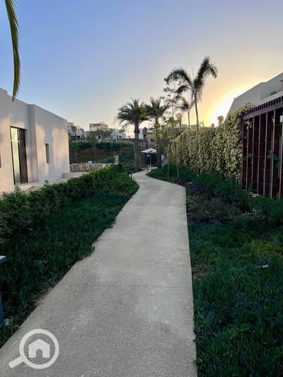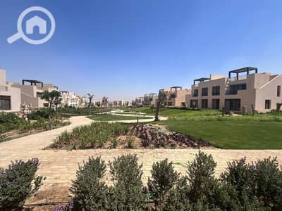 Townhouse with a wide garden and a view overlooking landscaping and green spaces in a prime location on Al Wahat Road in front of Mall of Egypt.