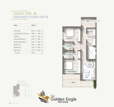 Chalet for sale, ground floor, 121 square meters, with a 31-square-meter garden