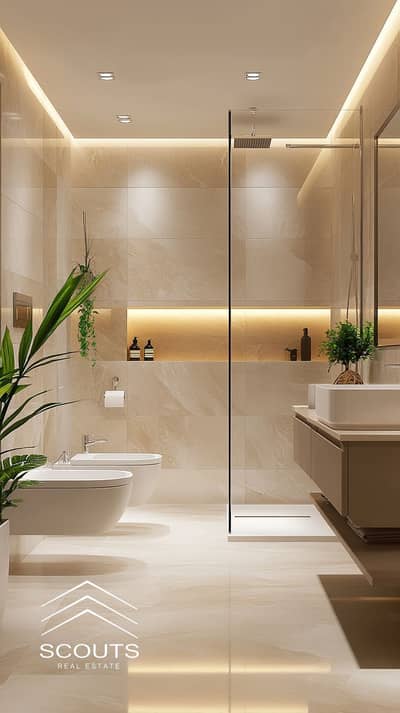 Apartment for sale in Mostakbal City, immediate delivery, double view of the landscape and the lagoon, next to all services in Bloomfields Compound, n