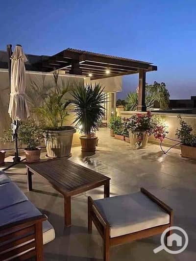 Penthouse villa in Palm Hills New Cairo, fully finished super lux with 5 rooms and including a nanny room, with an area of more than 220 meters.