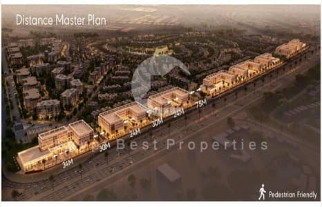 Location: Prime location in the Golden Square on the 90th Street South directly, with a 1000-meter frontage, right after the American University in Cairo (AUC) and directly in front of Hyde Park in the Fifth Settlement. "