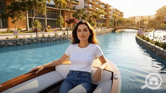 A fully finished apartment for sale with a 5%DP , featuring a landscape and lagoon view, in luxurious compound in 6th of October