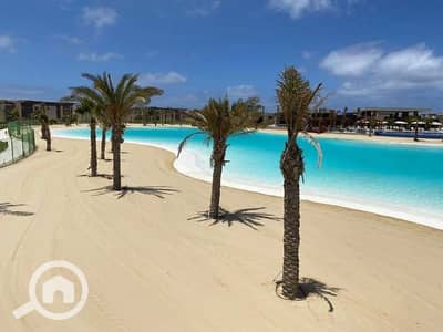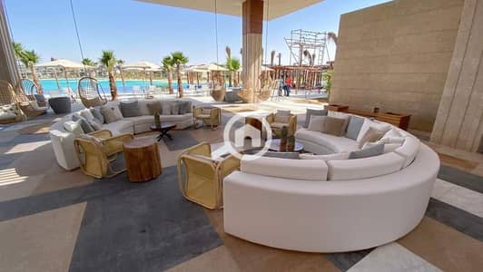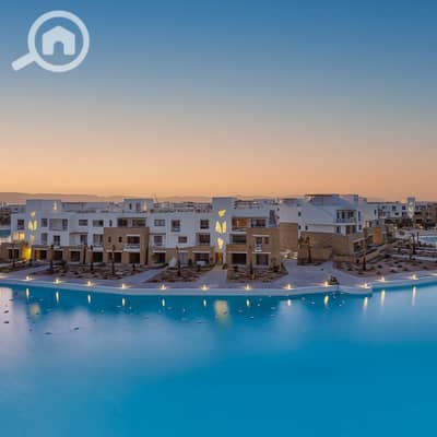 For sale, a chalet directly on the lagoon in Swan Lake El Gouna, on a sandy beach, in a prime location and with hotel finishing.
