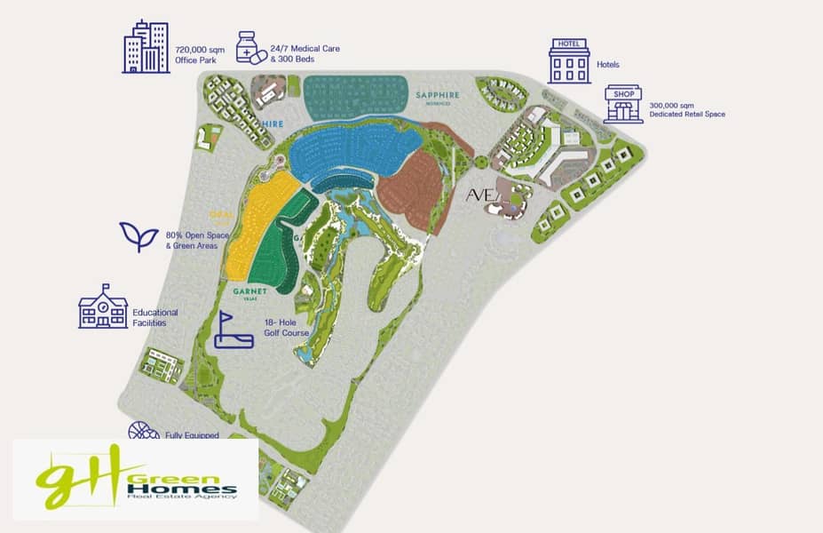 Community Centers across all neighborhoods / International Schools / Medical Complex / International Hotels / Sports Club & Fitness Facilities / Business Parks & Office Spaces / Entertainment Venues & Retail Areas / Gated Security with Smart Access Systems