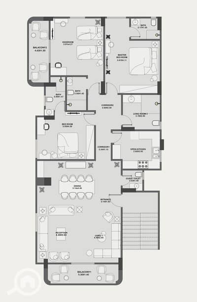 Located on the second floor, the unit features a perfect layout that includes 3 bedrooms (one master with an en-suite bathroom), 3 bathrooms, a spacious living room, and a 3-piece reception area ideal for elegant modern living.