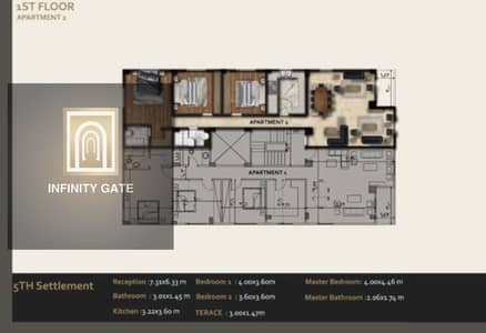 3 bedrooms including a master bedroom + 2 bathrooms + 3-piece reception