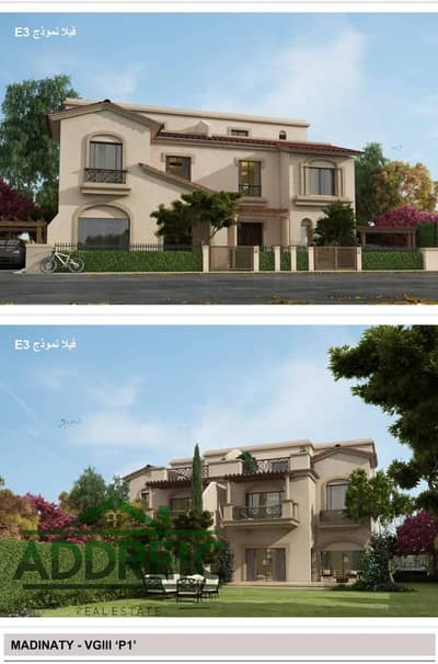 Available for sale in Madinaty at a fantastic price, Villa 266, Model E3, in the most upscale areas of Madinaty, Four Seasons Villas, delivery in only