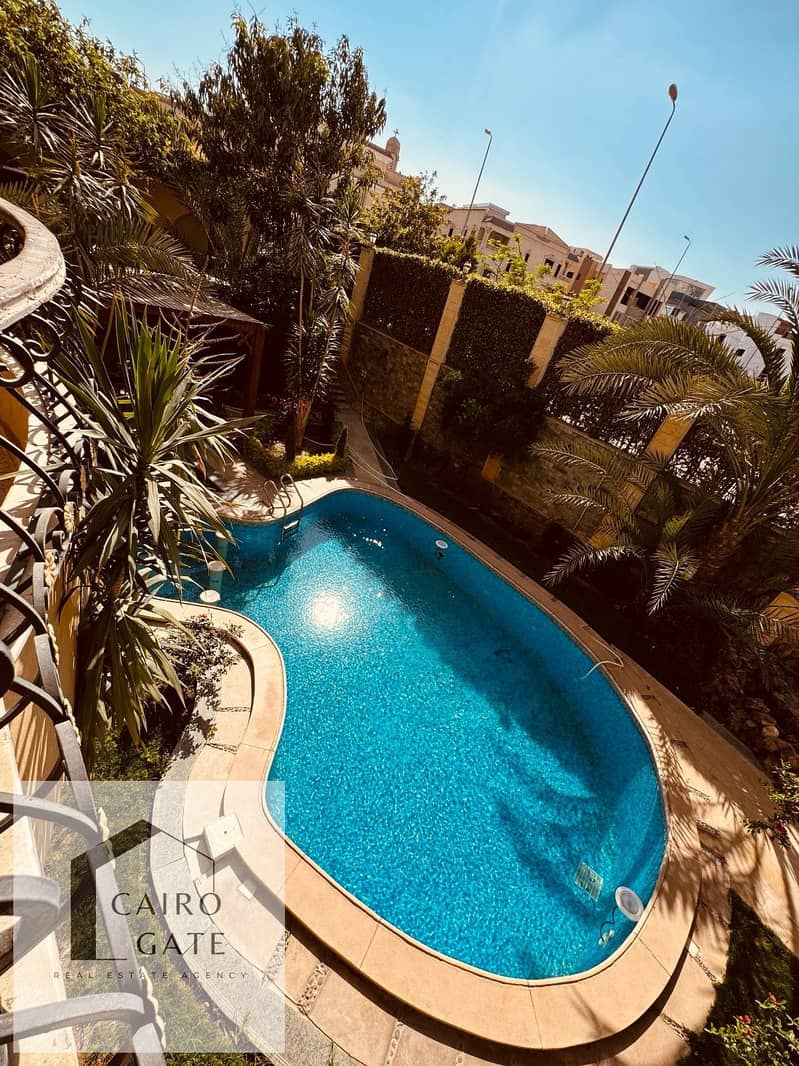 Furnished villa with a swimming pool for rent daily in Sheikh Zayed, suitable for families
