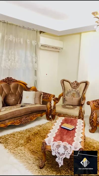 Furnished apartment for rent next to Mall of Arabia, Tyba Gardens compound on the main road, next to the tourist walkway, Misr University, October 6 University, and all services.