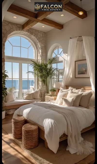 First row on the sea with a private beach, a villa for sale in the North Coast in Ogami Sodic, next to Fouka Bay and Mountain View, minutes from El Al