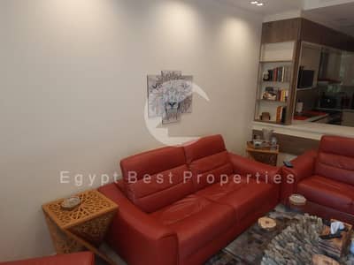 Luxury furnished apartment in Aeon Towers by Marakez, ground floor with private garden, elegantly finished and ready to move in