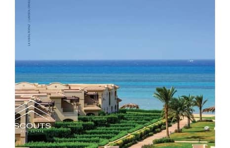 On the sea, immediate delivery, a chalet for sale with a garden in Ain Sokhna, fully finished, La Vista Gardens Village, a distinguished location, min