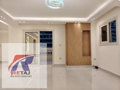 An opportunity for ambassadors and dignitaries: A palace-like apartment in the Golden Square, Abdel Razek El Sanhouri Street, 2019 buildings, third floor, registered with the Real Estate Registry. Share in the land and share in the garage. First touch.
